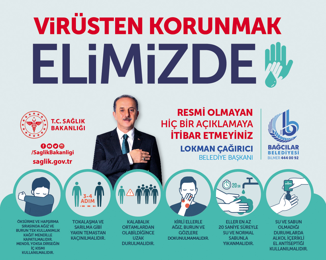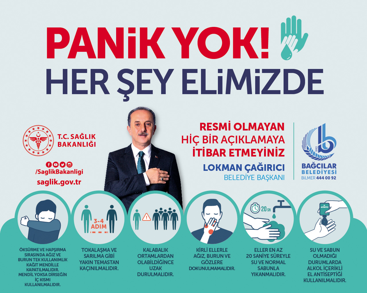 Bağcılar Belediye Başkanı Lokman Çağırıcı, koronavirüs ile mücadele kapsamında halkın sağlığını korumak için ilçe sakinlerini işlemlerini belediyeye gelmeden online olarak internet üzerinden yapmaya davet etti.