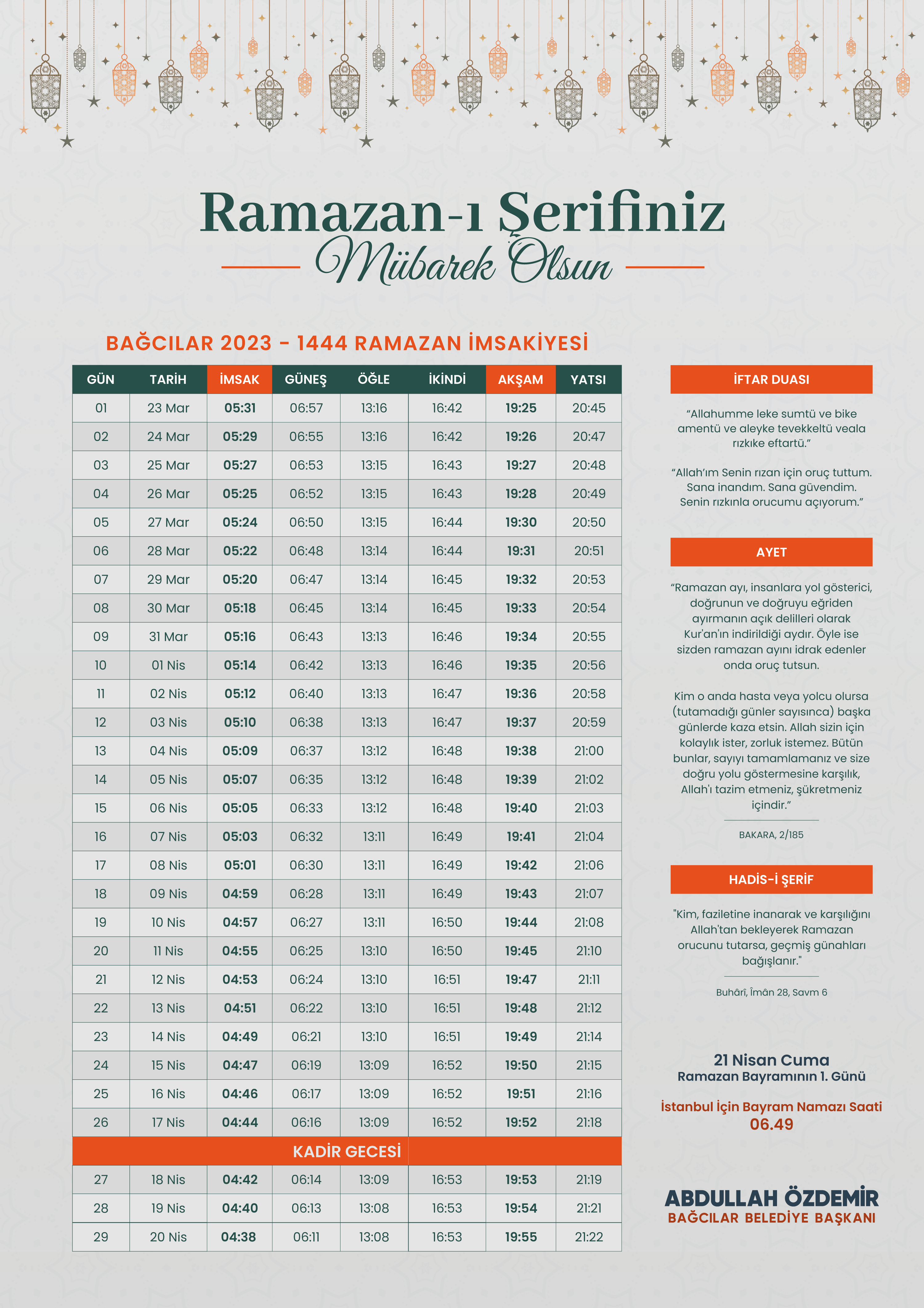 2023 Bağcılar - 1444 Ramazan İmsakiyesi < PDF olarak indir >