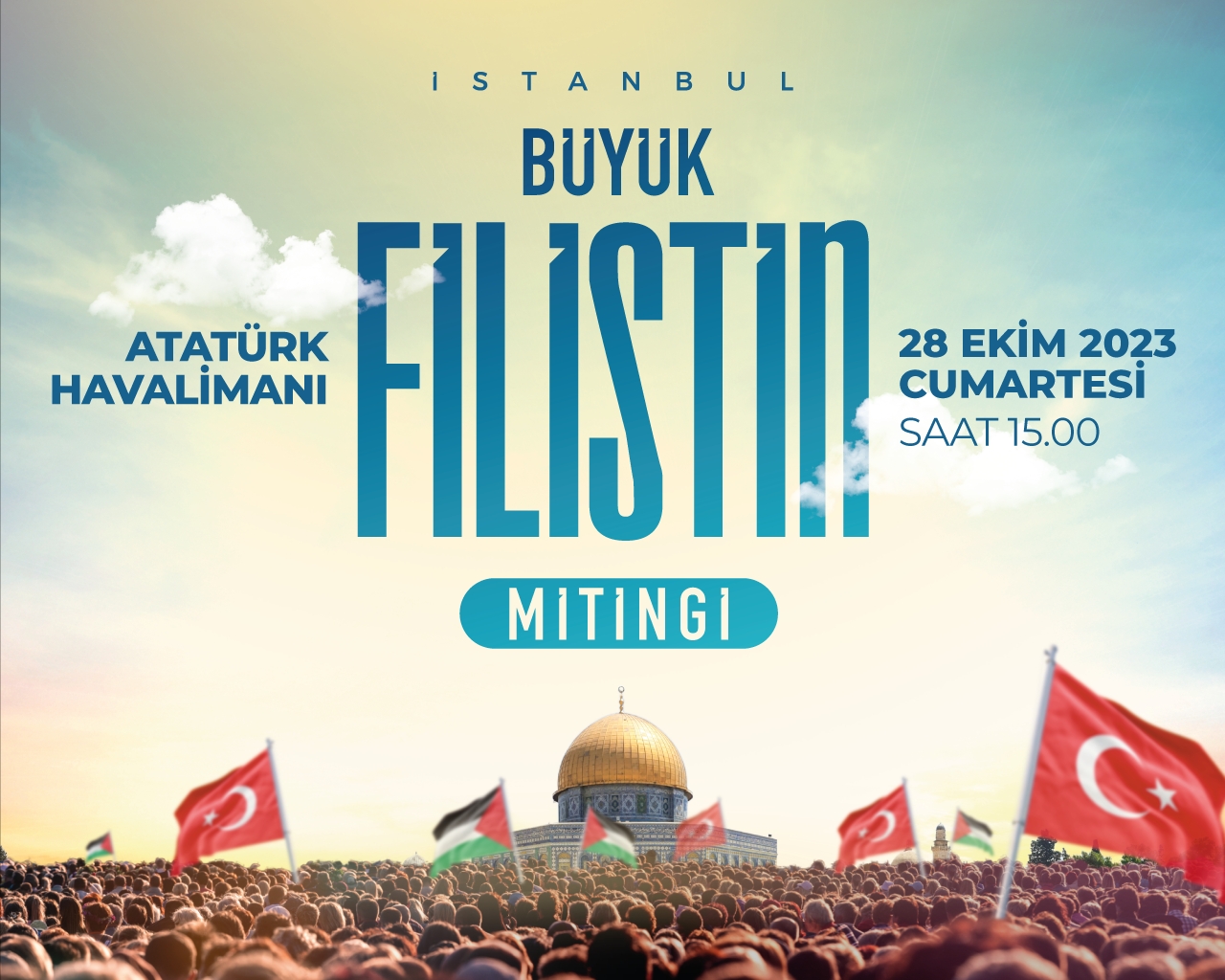 İsral’in saldırılarına karşı Filistinli kardeşlerimizin haklı davasını ve seslerini dünyaya duyurmak için 28 Ekim Cumartesi günü (yarın) saat 15.00’te Atatürk Havalimanı’nda gerçekleşecek olan Büyük Filistin Mitingi’ne tüm hemşehrilerimizi bekliyoruz.