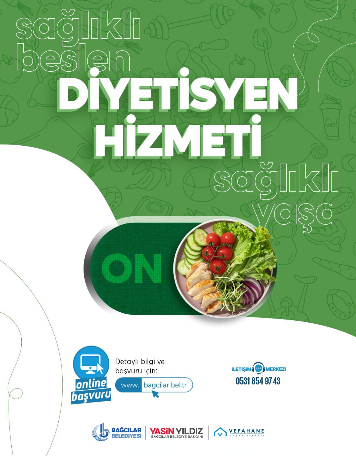 Daha Sağlıklı Bir Bağcılar İçin; Bağcılar Belediyesi, ilçemizde ikamet eden vatandaşlarımızın sağlıklı yaşam alışkanlıkları kazanmasına katkı sağlamak amacıyla ücretsiz diyetisyen hizmeti sunmaktadır.