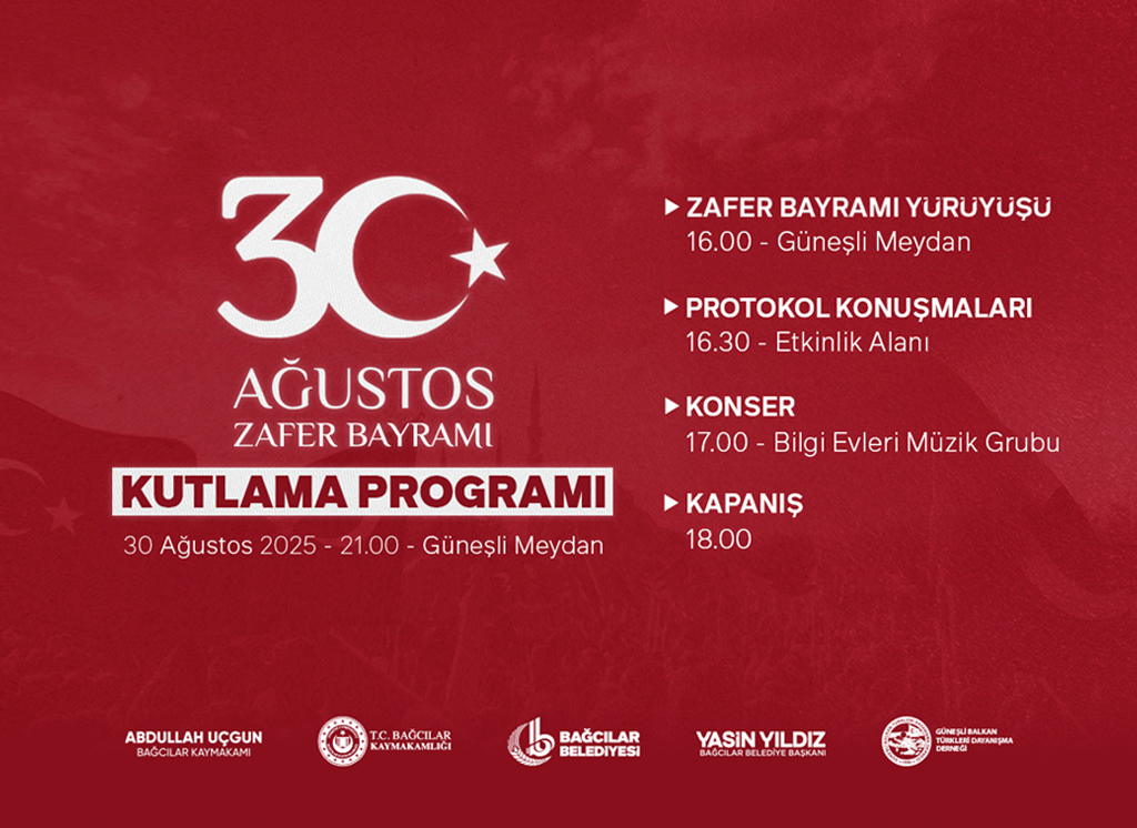 Haydi Bağcılar, 30 Ağustos Zafer Bayramı’mızın coşkusunu birlikte yaşayalım.