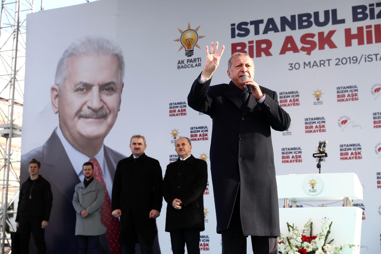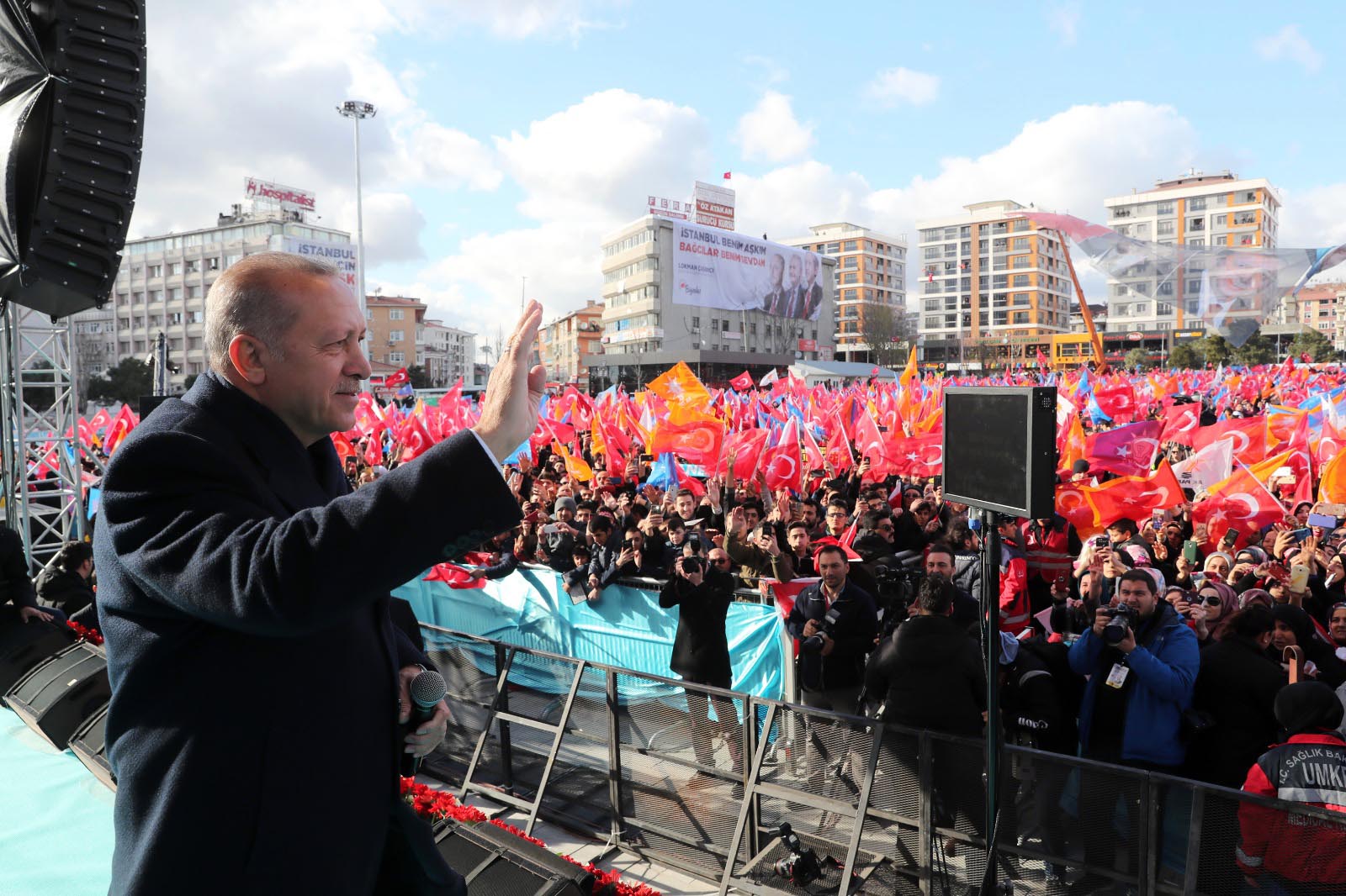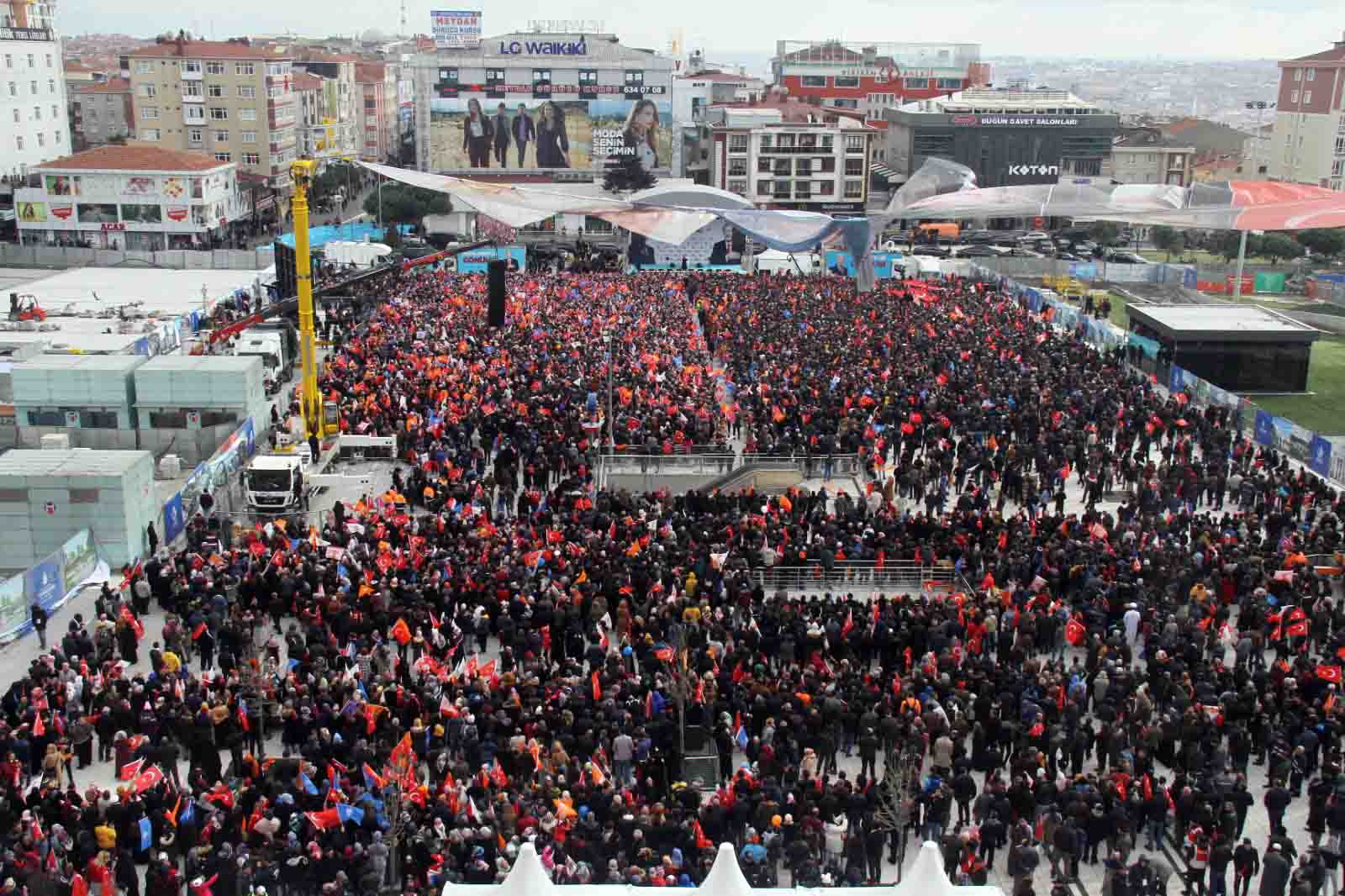 Cumhurbaşkanı Recep Tayyip Erdoğan, 31 Mart Yerel seçim Çalışmalarını Bağcılar’daki mitingle tamamladı. Bağcılarlılar’ın gösterdiği ilgiden memnun kalan Erdoğan, “AK Parti belediyeciliğinin destanlaştığı yer Bağcılar. İnanıyorum ki sandıkta da Bağcılar bir tarih yazacak ve yarın Türkiye’de rekor inşallah Bağcılar’da olacak” dedi. Bağcılar Belediye Başkanı Lokman Çağırıcı da “Bağcılar Cumhurbaşkanımızı hiçbir zaman yalnız bırakmadı. Dualarıyla oylarıyla her zaman liderinin yanında oldu” dedi.