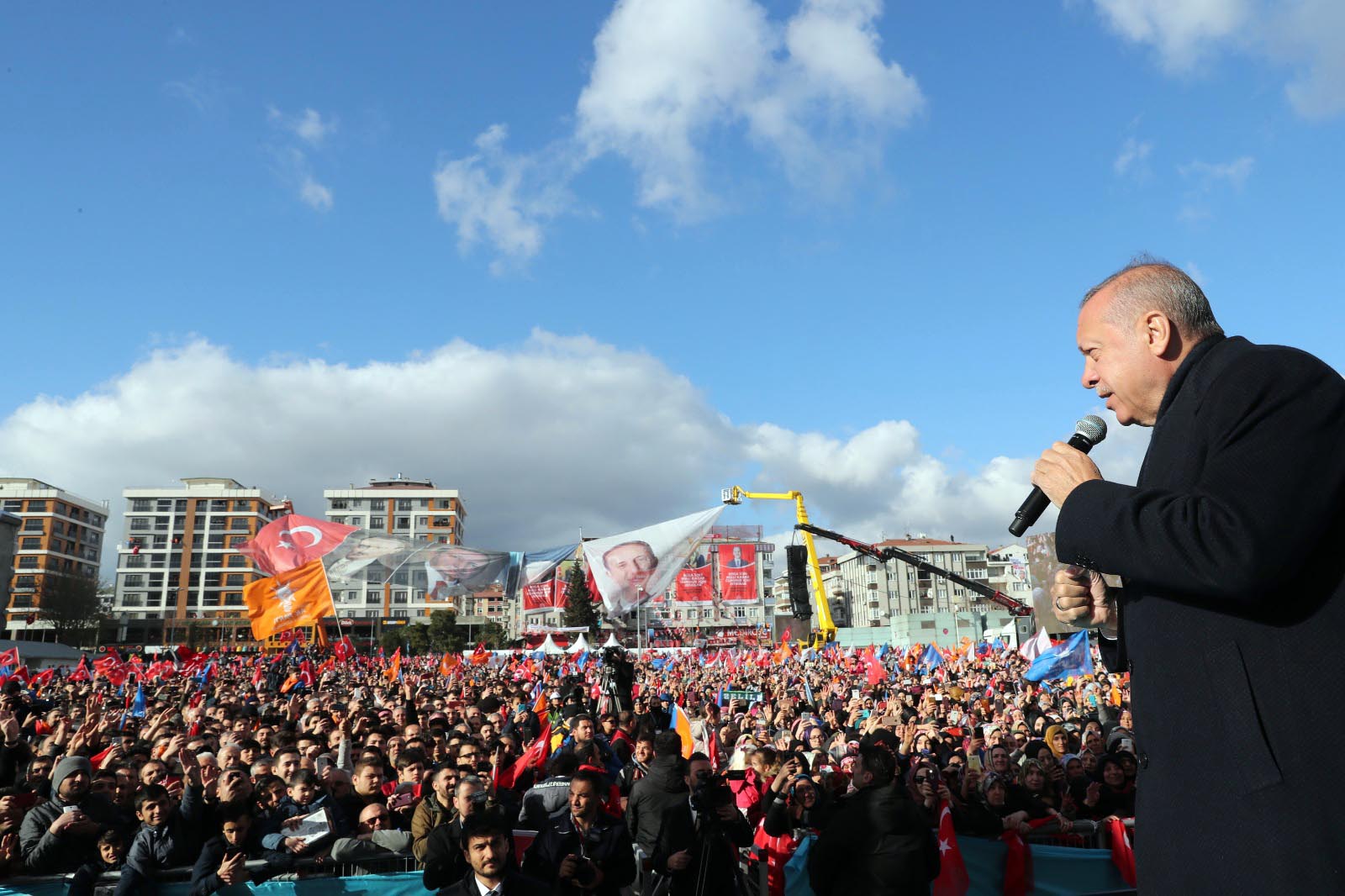Erdoğan, sözlerini 'Sizlerden son günlerde dilleri Çözülen FETÖ'cü hainlere 15 Temmuz gecesi elinde kadehle darbecileri kutlayanlara, İstanbul'u Konstantinapol’e Çevirmeye yeltenen Haçlı bozuntularına, Kandil'in uzantılarının tehditlerini sineye Çeken korkaklara, karanlık pazarlıklarla teröristleri belediyelere sızdırmaya Çalışanlara, tüm ezan ve bayrak düşmanlarına velhasıl istiklalimiz ve istikbalimize kasteden herkese sandıkta oylarınızla bir ders vermenizi istiyorum. Onun için adaylarımızı size emanet ediyorum. Bağcılar'ı da adaylarımıza emanet ediyorum' diyerek tamamladı.