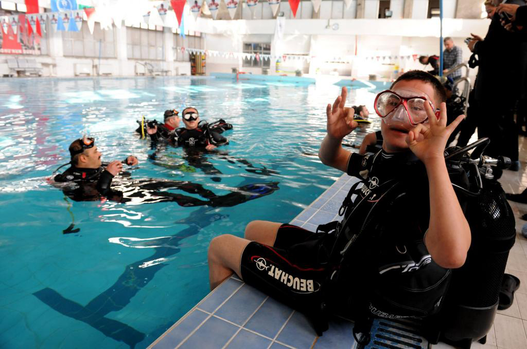 İlk ve tek olma özelliği taşıyan bu kulüpte eğitim görecek olan engelliler, her açıdan donanımlı birer profesyonel dalgıç olacak. Dalış merkezinin başarısını tebrik eden Bağcılar Belediye Başkanı Lokman Çağırıcı, “Engellilerle ilgili yaptığımız Çalışmalarda geldiğimiz bu nokta bizi Çok mutlu etti. İnanıyorum ki engelli Çocuklarımız buralardan gerçek bir dalgıç olarak ayrılacak” dedi.