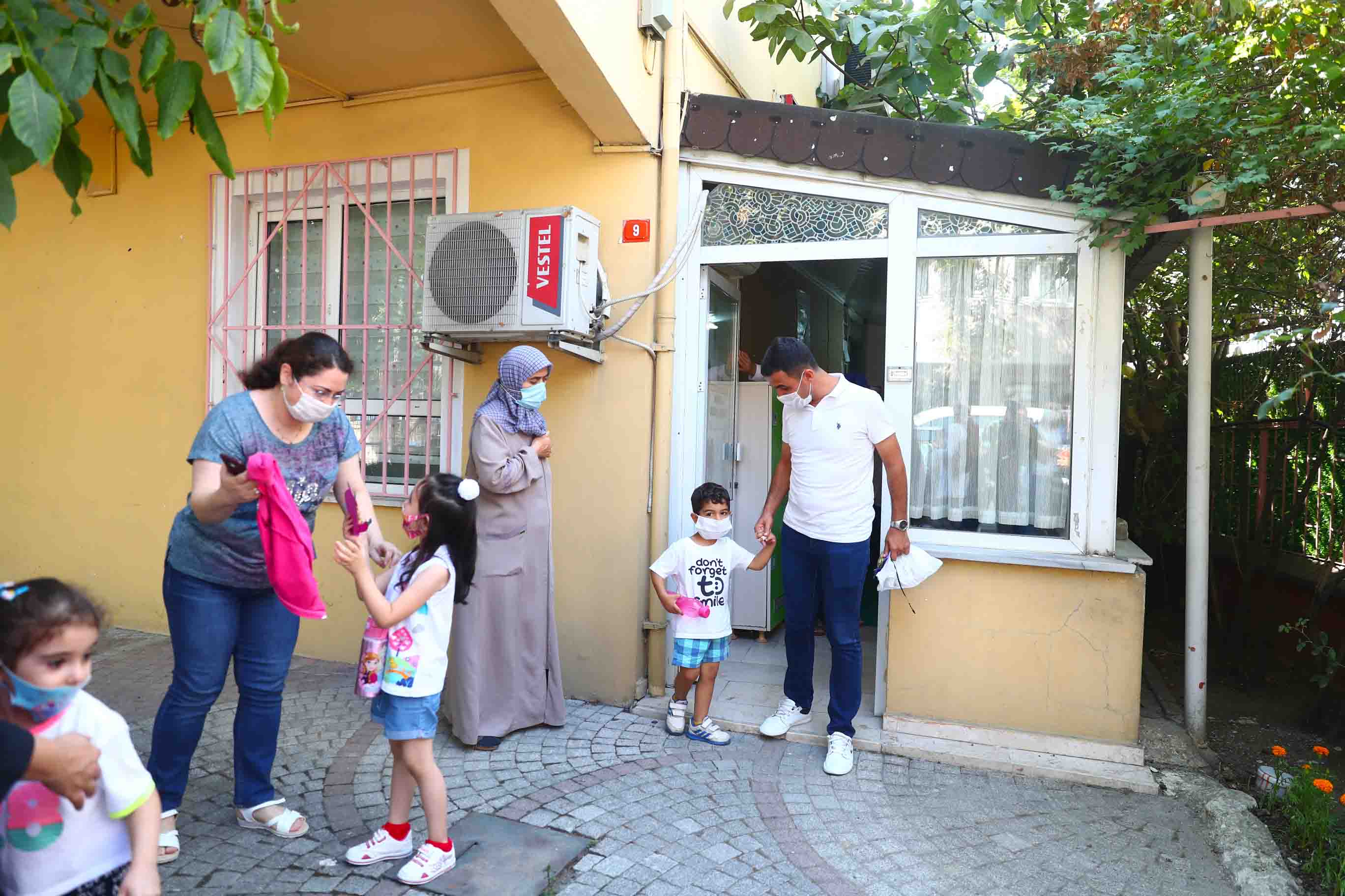 Pandemi tedbirlerine uygun şekilde bugün hizmet vermeye başlayan Bağcılar Belediyesi Çocuk Bakım Evi’nde 4-6 yaş arası minikler, ilk gün heyecanını yaşadı. Hijyenik sınıflarda sosyal mesafeli olarak eğitim alan çocuklar, çıkışta kendilerini bekleyen sevdiklerine koştu.