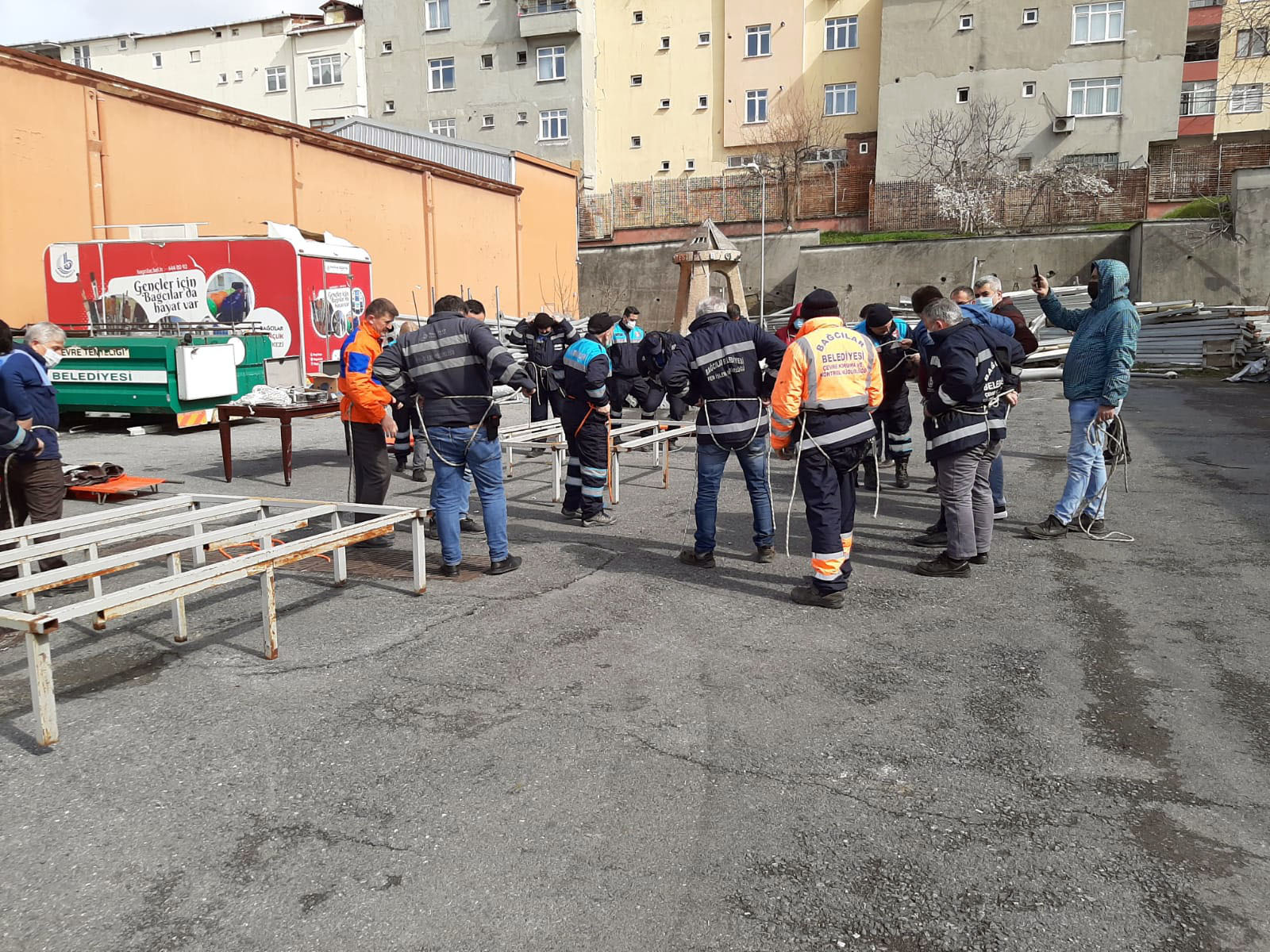 Yaşanabilecek olası bir afet durumunda neler yapılacağına ilişkin BAĞKUT (Bağcılar Belediyesi Arama Kurtarma) ve YARKUR (Yıldızlar Arama Kurtarma Derneği) ekipleri “Arama Kurtarma” eğitimi yaptı. Bu kapsamda sedye bağlamadan adam kurtarmaya kadar birçok teknik uygulamalı olarak gösterildi.