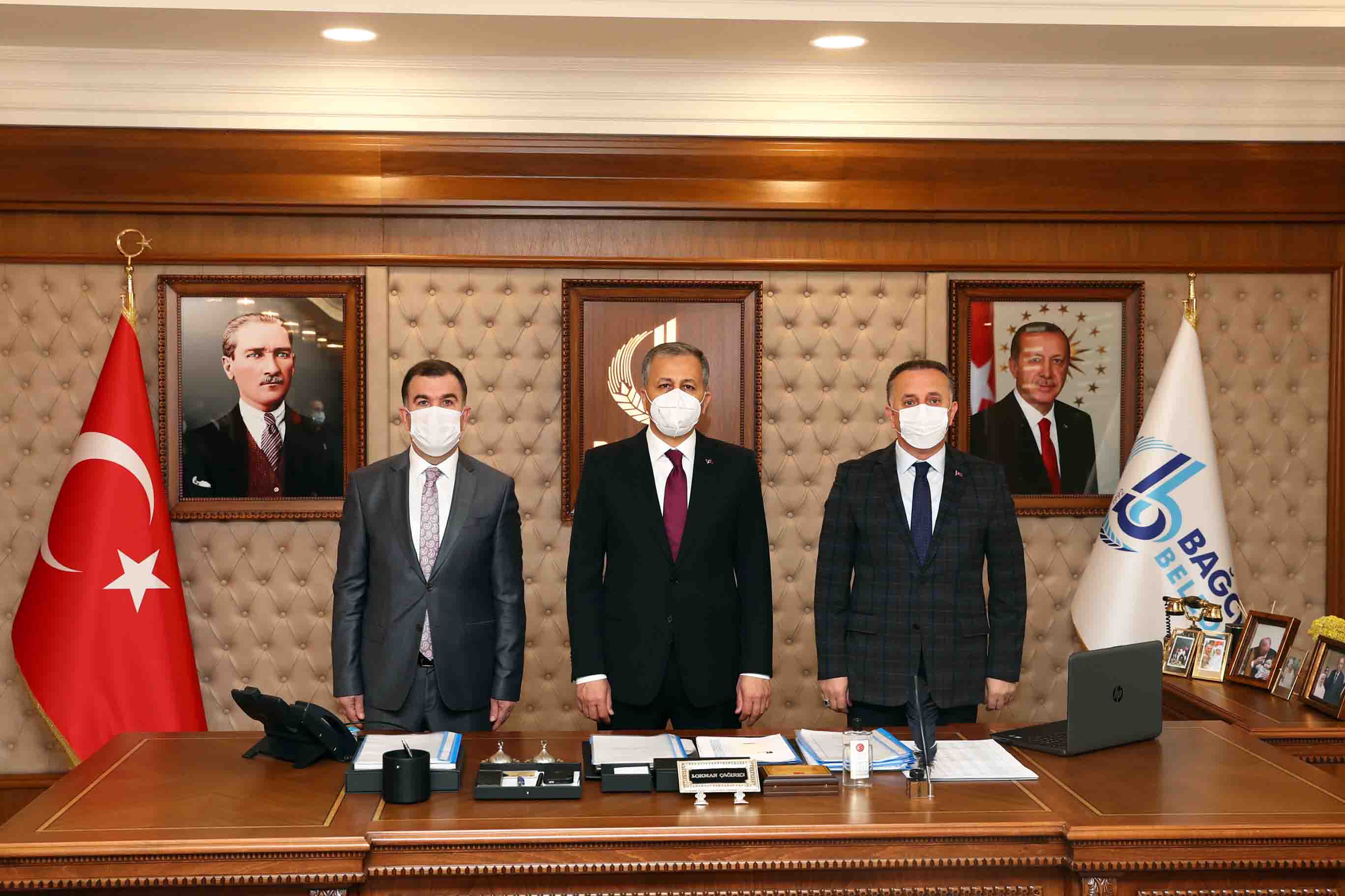 İstanbul Valisi Ali Yerlikaya, Bağcılar Belediye Başkanlığı yeni hizmet binasına gelerek Bağcılar Belediye Başkanı Lokman Çağırıcı’ya hayırlı olsun ziyaretinde bulundu. Başkan Çağırıcı, Vali Yerlikaya’yı makamında ağırladı. Ziyarette Bağcılar Kaymakamı Mustafa Eldivan ile İlçe Milli Eğitim Müdürü Mustafa Yılmaz da hazır bulundu.
