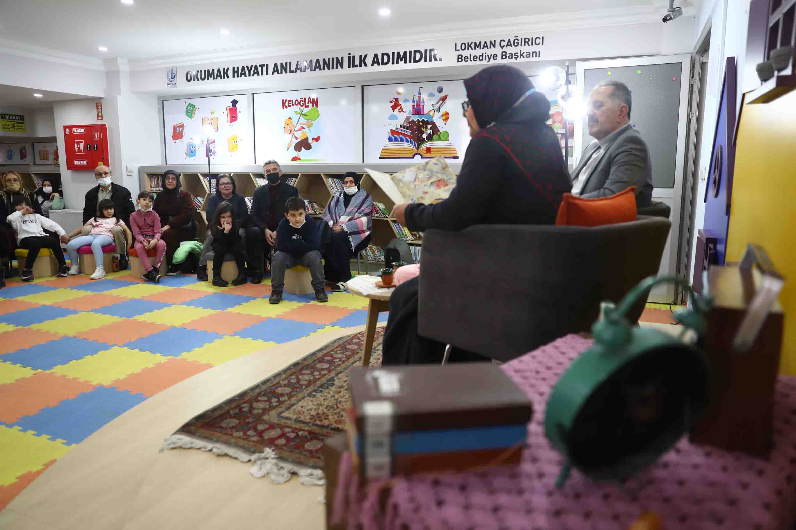 Mutlu dakikalar yaşandığı anlarda emekli öğretmenler Kemal Bayrak “Duvarın Arkasında Ne Var?”, Emine Korkmaz ise “Okul Çantamı Kumla Doldurdum” isimli masalı okudu. Çocuklar da kendileri için okunan masalları büyük bir ilgiyle dinledi. Bayrak ve Korkmaz öğrencilere “Kitap okuyun” ve “İyilik yapın” tavsiyelerinde bulundu.