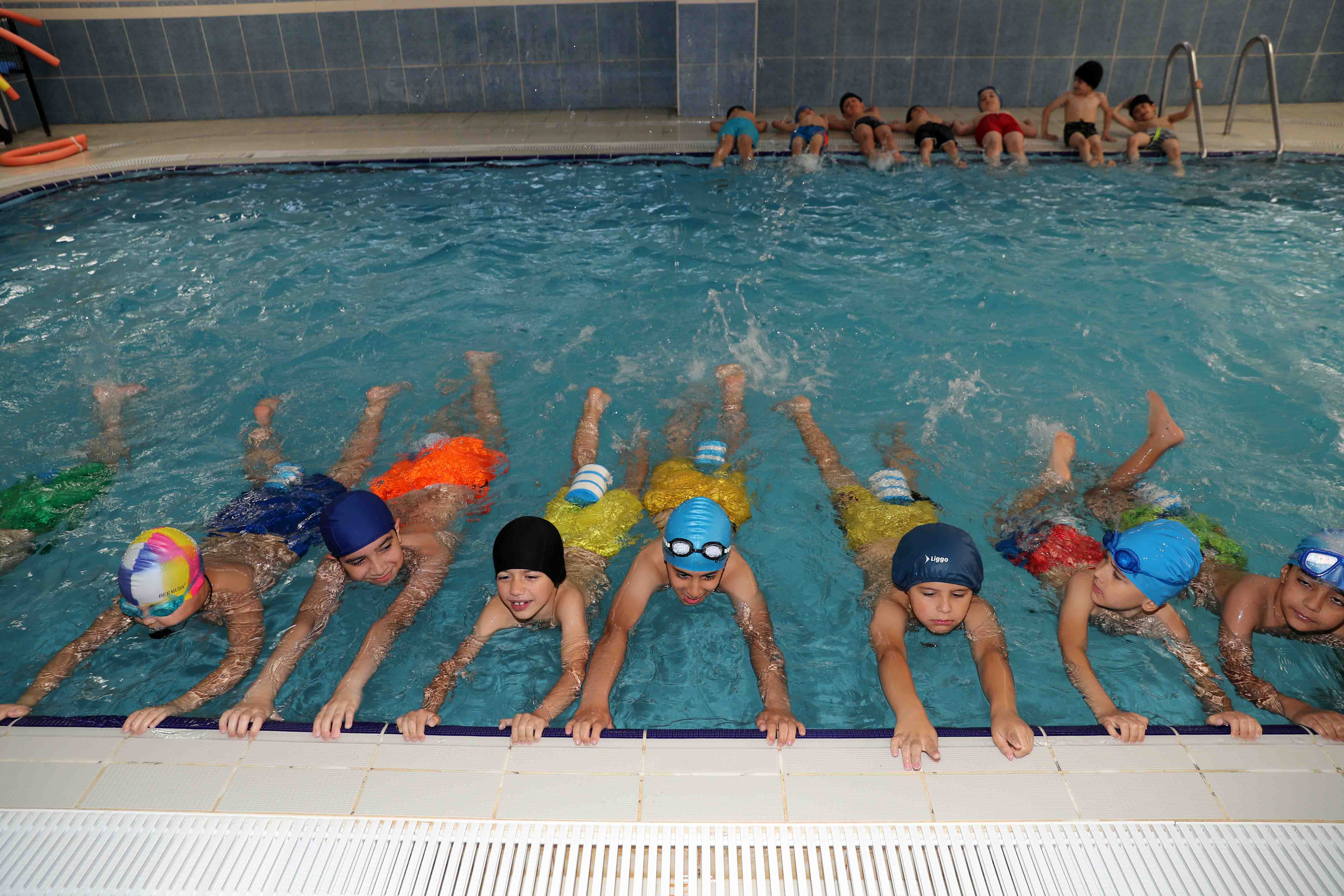 Gerekli hijyen şartların sağlandığı havuzlarda uzman kadın ve erkek antrenörler tarafından temel yüzme bilgisi veriliyor. Çocuklar, sıcak yaz günlerinin keyfini havuzlarda serinleyerek Çıkarırken, arkadaşlarıyla da keyifli zaman geçiriyor. Çocukları yaz tatilini yüzerek değerlendirmeye davet eden Bağcılar Belediye Başkanı Abdullah Özdemir, “Su sporları Çocuklarımız için Çok önemli. Üstelik yüzmenin sadece fiziksel faydaları yok, psikolojik olarak da oldukÇa faydalı bir spor türü. Bu sebeple bütün Çocuklarımızı havuzlarımızdan yararlanmaya davet ediyorum” dedi.