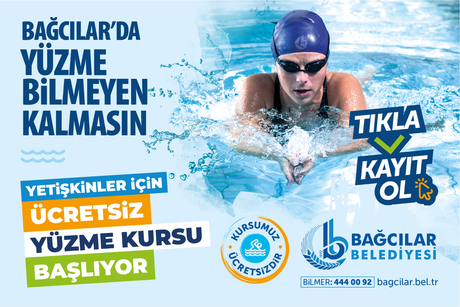Okulların tatil olmasıyla birlikte Bağcılar Belediyesi bünyesindeki havuzlarda yaz sezonu başladı. Cumhurbaşkanlığı tarafından başlatılan ve 8 yıldır devam eden “Yüzme Bilmeyen Kalmasın” projesi bu yıl da sürdürülüyor. Bu kapsamda belediyeye bağlı Barbaros, Demirkapı, Göztepe, Kemalpaşa, Kazım Karabekir, Yıldıztepe, Yüzyıl ve 15 Temmuz yüzme havuzlarında hafta içi 09.00-16.00 saatleri arasında 6-13 yaş grubu Çocuklara ücretsiz yüzme kursu veriliyor.