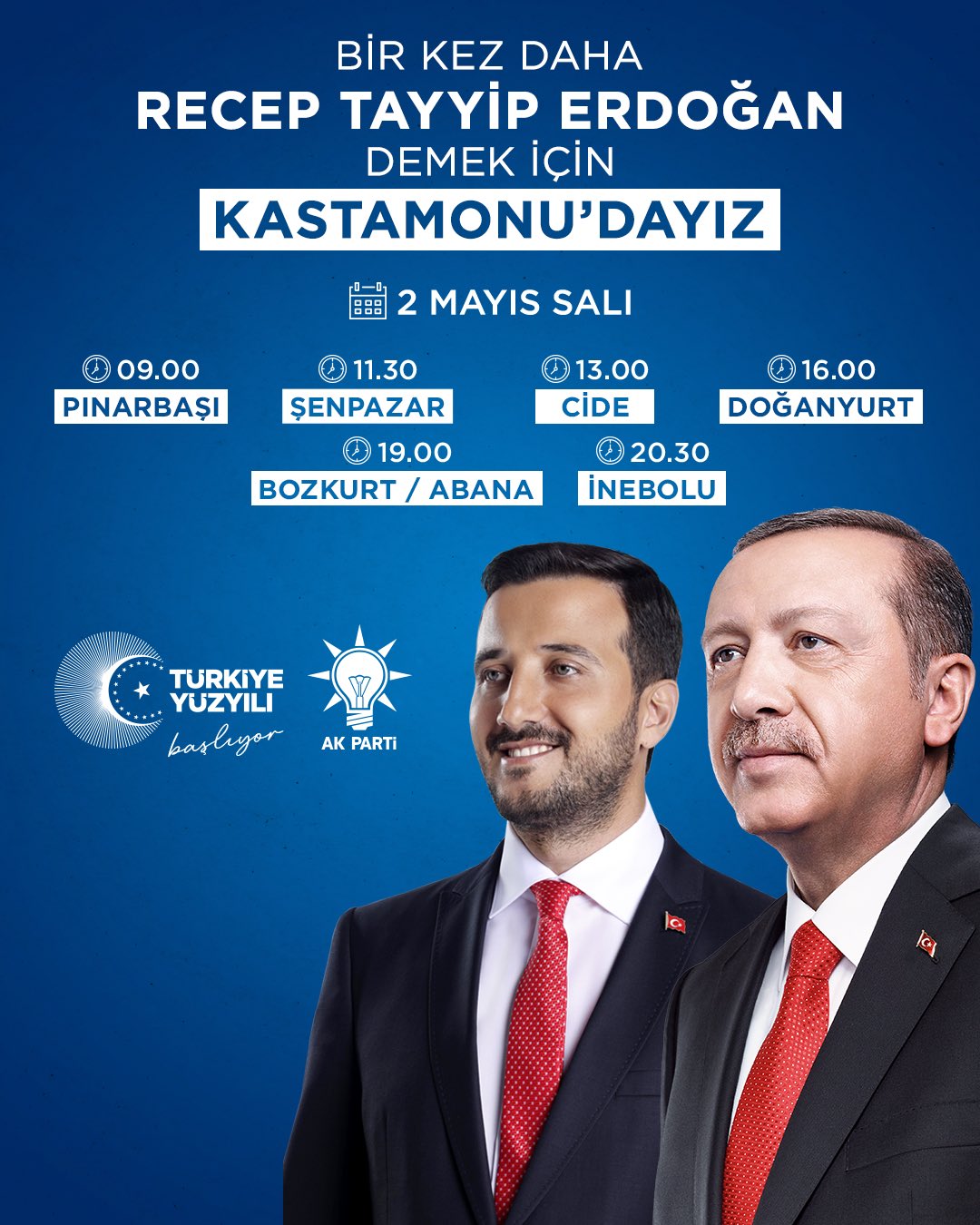 Saat 09.00’da Pınarbaşı’nda Kastamonulularla buluşacak olan Özdemir, 11.30’da Şenpazar’da, 13.00’te Cide’de, 16.00’da Doğanyurt’ta, 19.00’da Bozkurt ile Abana’da ve son olarak 20.30’da İnebolu’da hemşehrileriyle bir araya gelecek.